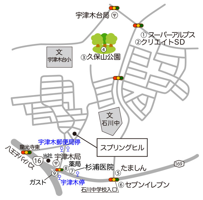 宇津木町・宇津木台は八王子駅からバスの本数も多くあり、 また八王子インターからも近いため、交通アクセスのよい地域です。 周辺には、小中学校、郵便局、公園、スーパー、病院などがあり、とても住みやすい住環境です。 |